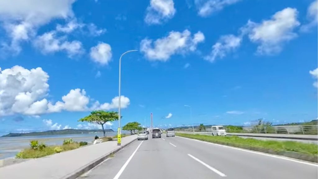 昼食後は、沖縄ならではの絶景ドライブが楽しめる「海中道路」を通りました。海中道路は海を渡るように設計されており、両側に広がるエメラルドグリーンの海が圧巻です。窓を少し開けて潮風を感じながらのドライブは、日常を忘れさせてくれる瞬間。道沿いには展望スペースもあり、写真を撮るスポットとしても人気です。