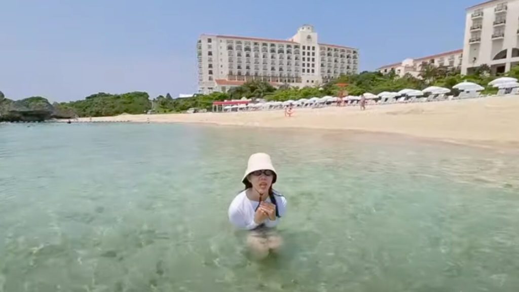 午後には「ニライビーチ」に立ち寄り、海を満喫しました。透明度の高い海と白い砂浜が広がり、沖縄の美しい海を存分に楽しめます。泳ぐだけでなく、ビーチでのんびりリラックスするのもおすすめです。
